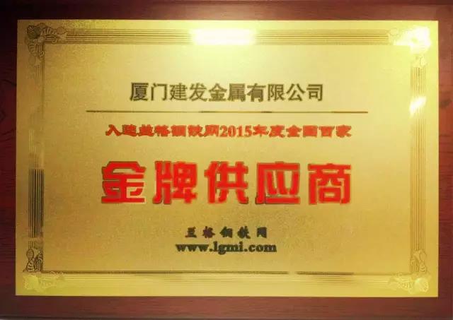 在蘭格鋼鐵網(wǎng)的主持下,經(jīng)過數(shù)輪謹(jǐn)慎、公正評選,"蘭格鋼鐵網(wǎng)金牌供應(yīng)商TOP100"評選結(jié)果終于塵埃落定。建發(fā)金屬公司憑借專業(yè)服務(wù)、守信經(jīng)營,獲評蘭格金牌供應(yīng)商TOP100,并受頒牌匾和證書,這已是建發(fā)金屬公司連續(xù)第二次入選該榜單。此次入選的企業(yè)都是具有一定規(guī)模和實(shí)力,供應(yīng)正品材,價格實(shí)惠,準(zhǔn)斤足量、服務(wù)到位的企業(yè),具備較高的行業(yè)權(quán)威性和認(rèn)可度。
